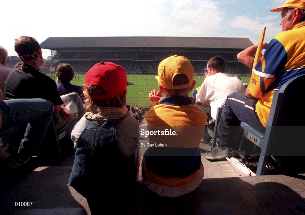 9 August 1998; Clare fans sit on steps in the Cusack Stand during the Guinness All-Ireland Senior Hurling Championship semi-final match between Offaly and Clare at Croke Park in Dublin. Photo by Ray Lohan/Sportsfile