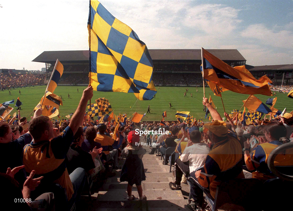 9 August 1998; Clare fans cheer on their side during the Guinness All-Ireland Senior Hurling Championship semi-final match between Offaly and Clare at Croke Park in Dublin. Photo by Ray Lohan/Sportsfile
