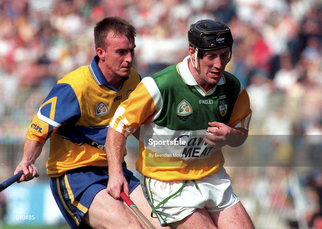 9 August 1998; Brian Whelahan of Offaly in action against Fergie Tuohy of Clare during the Guinness All-Ireland Senior Hurling Championship semi-final match between Offaly and Clare at Croke Park in Dublin. Photo by Brendan Moran/Sportsfile