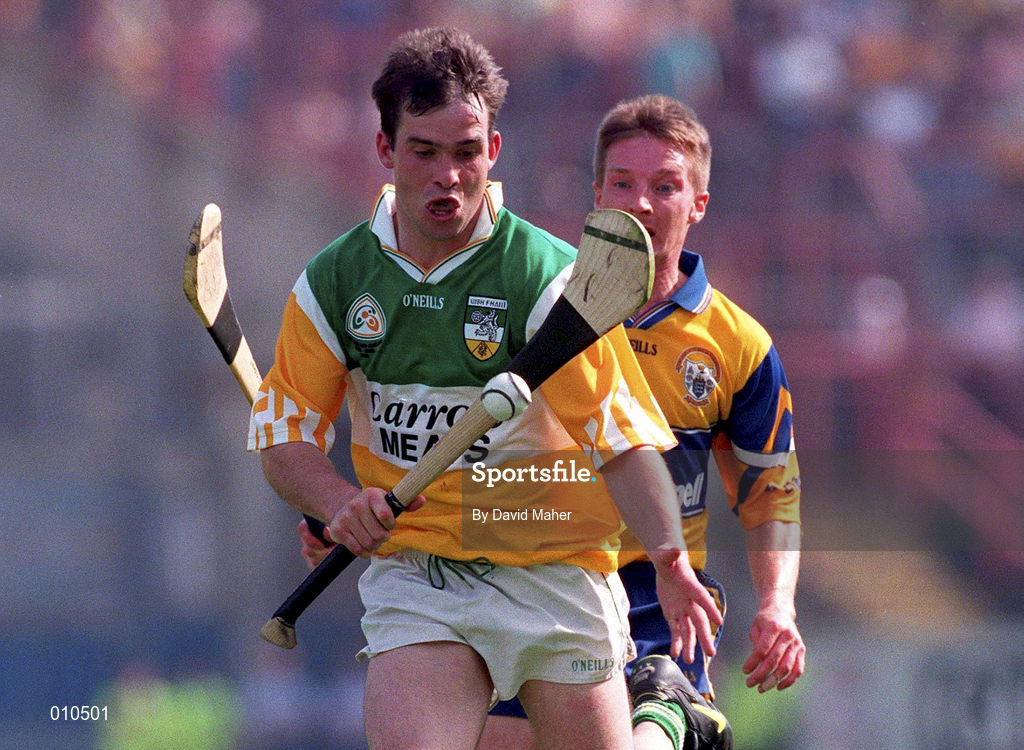 9 August 1998; Johnny Pilkington of Offaly in action against Jamesie O'Connor of Clare during the Guinness All-Ireland Senior Hurling Championship semi-final match between Offaly and Clare at Croke Park in Dublin. Photo by David Maher/Sportsfile