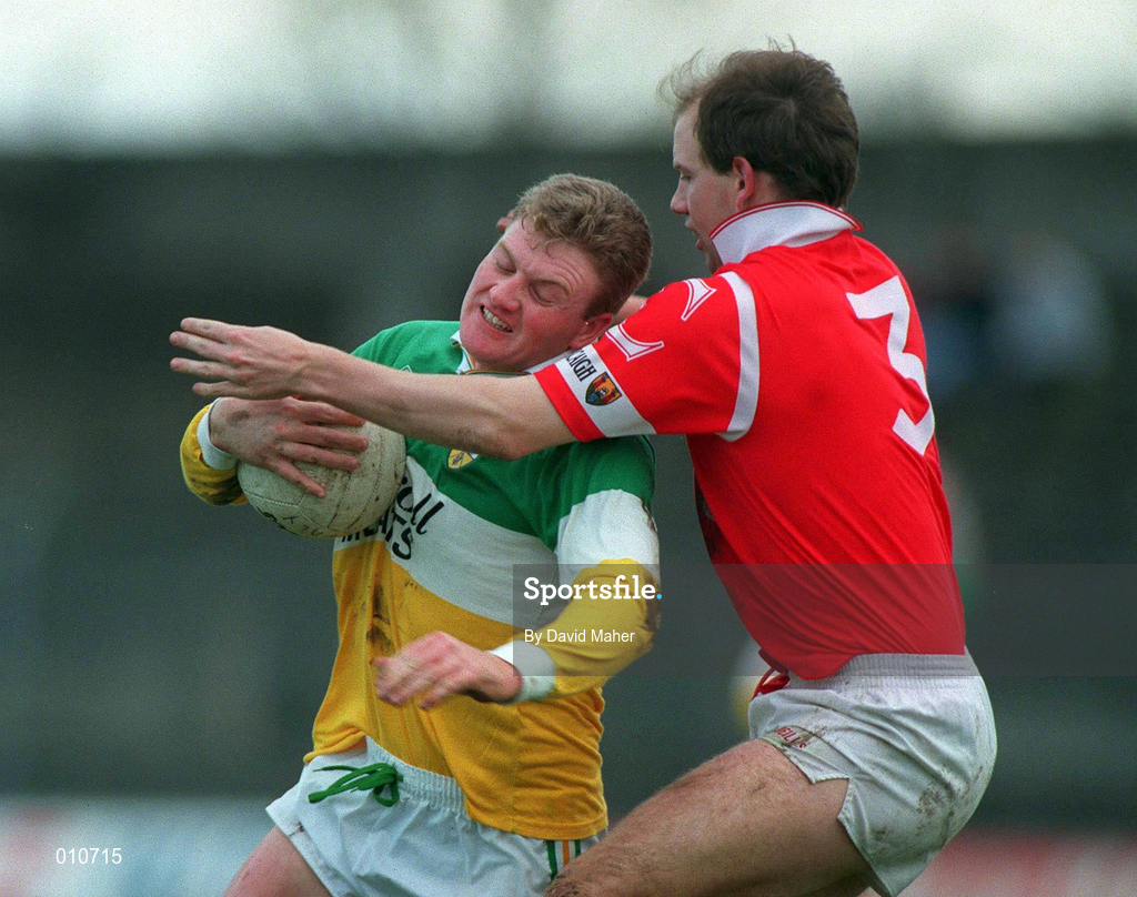1 November 1998; Frank Weir of Offaly in action against Ronan McCarthy of Cork during the Church & General National Football League match between Offaly and Cork at O'Connor Park in Tullamore, Offaly. Photo by David Maher/Sportsfile