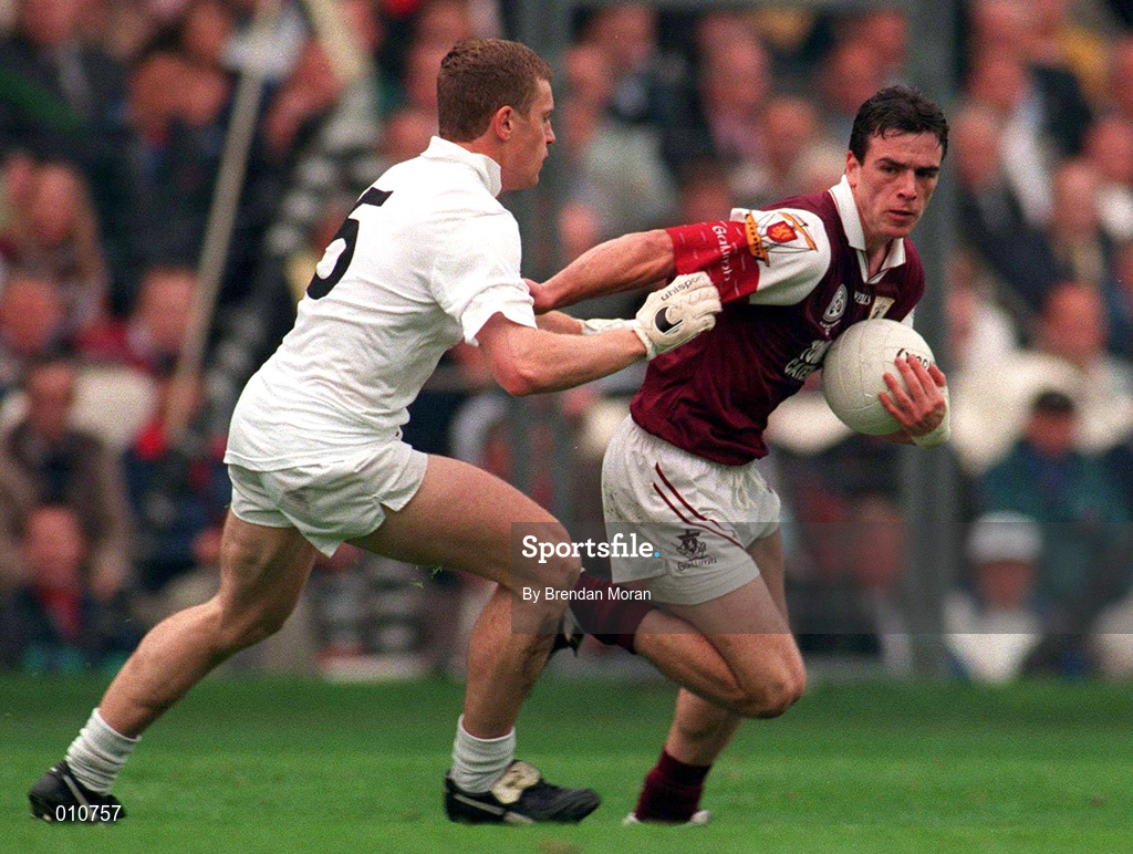 27 September 1998; Padraic Joyce of Galway in action against John Finn of Kildare during the All-Ireland Senior Football Final match between Galway and Kildare at Croke Park in Dublin. Photo by Brendan Moran/Sportsfile
