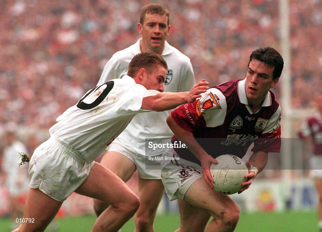 27 August 1998; Padraic Joyce of Galway in action against Eddie McCormack of Kildare during the All-Ireland Senior Football Final match between Galway and Kildare at Croke Park in Dublin. Photo by Matt Browne/Sportsfile