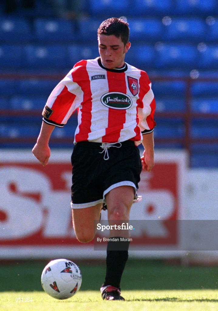 20 September 1998; Eddie McCallian of Derry City during the Harp Lager National League Premier Division match between Shamrock Rovers and Derry City at Tolka Park in Dublin. Photo by Brendan Moran/Sportsfile