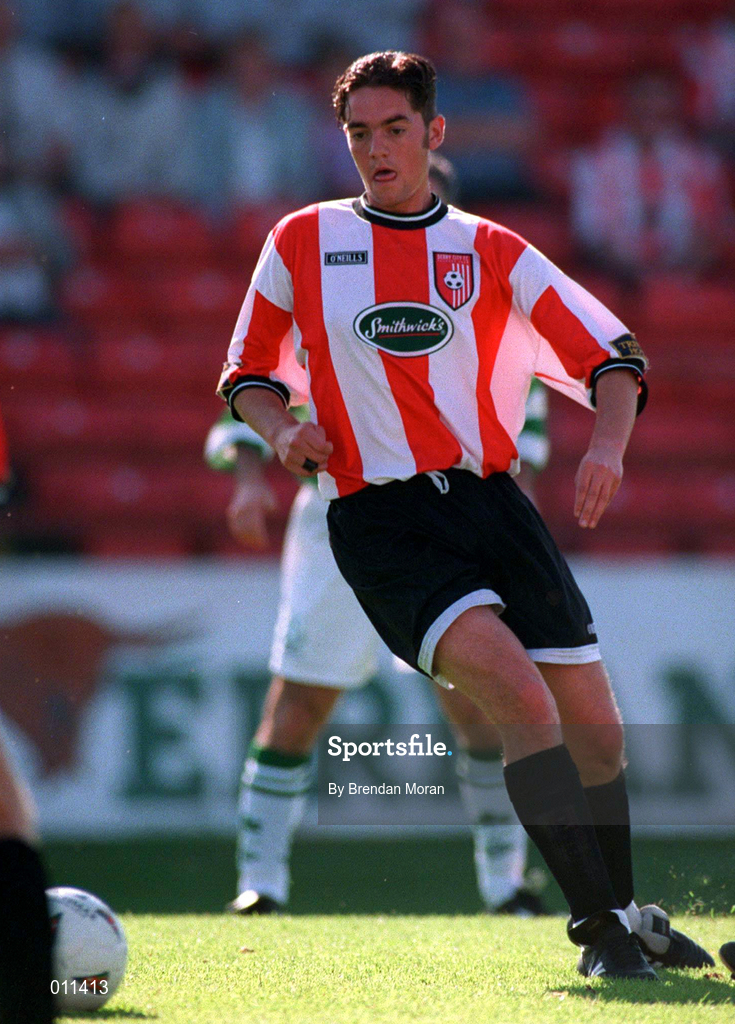 20 September 1998; Gary Beckett of Derry City during the Harp Lager National League Premier Division match between Shamrock Rovers and Derry City at Tolka Park in Dublin. Photo by Brendan Moran/Sportsfile