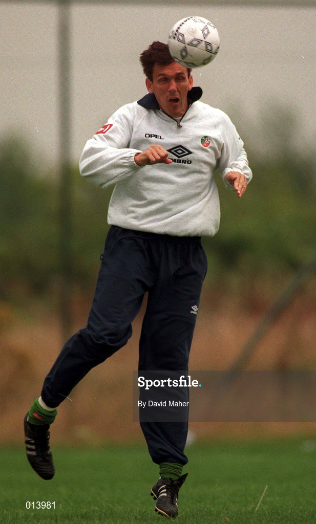 31 August 1998; Tony Cascarino during a Republic of Ireland training session at AUL Complex in Clonshaugh, Dublin. Photo by David Maher/Sportsfile