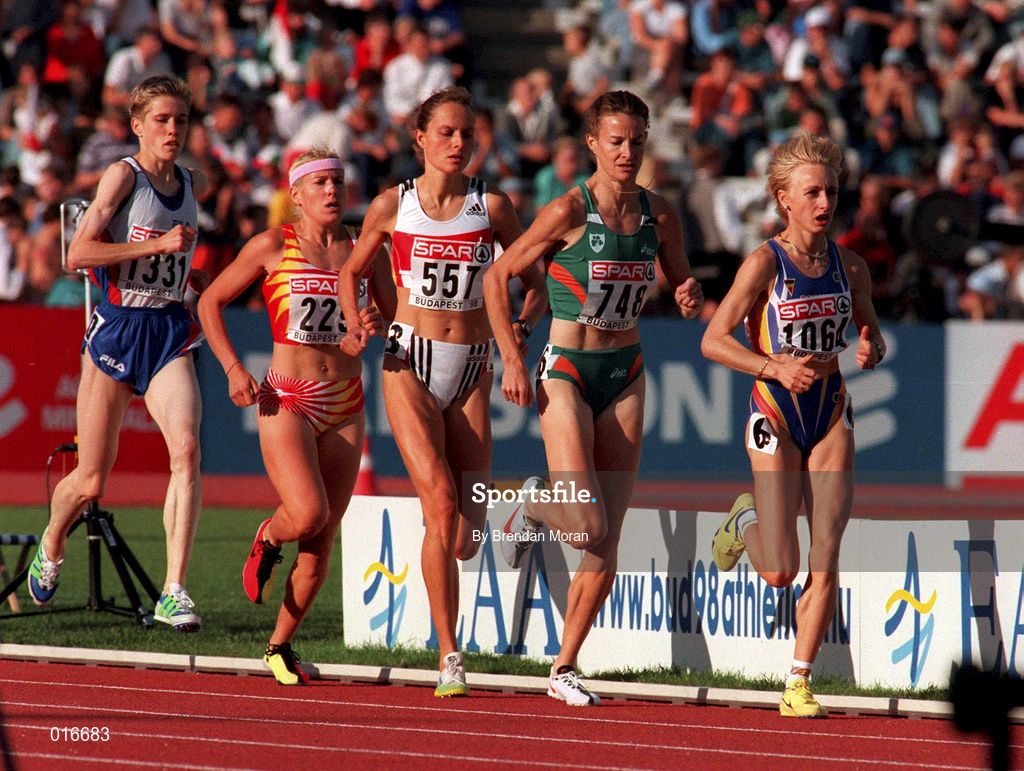 23 August 1998; Runners, from left, Olivera Jevtic of Serbia, Marta Dominguez of Spain, Kristina da Fonseca-Wollheim of Germany, Sonia O'Sullivan of Ireland and Gabriela Szabo of Romania competing in the Women's 5000m final during the European Athletics Championships at Nep Stadium in Budapest, Hungary. Photo by Brendan Moran/Sportsfile