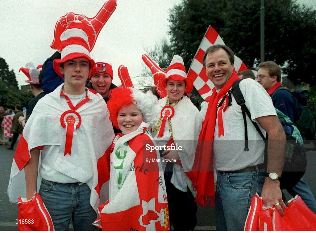 30 January 1999; Ulster fans on their way to the game. Heineken European Cup Final, Ulster v Colomiers, Lansdowne Road, Dublin. Picture credit: Matt Browne / SPORTSFILE