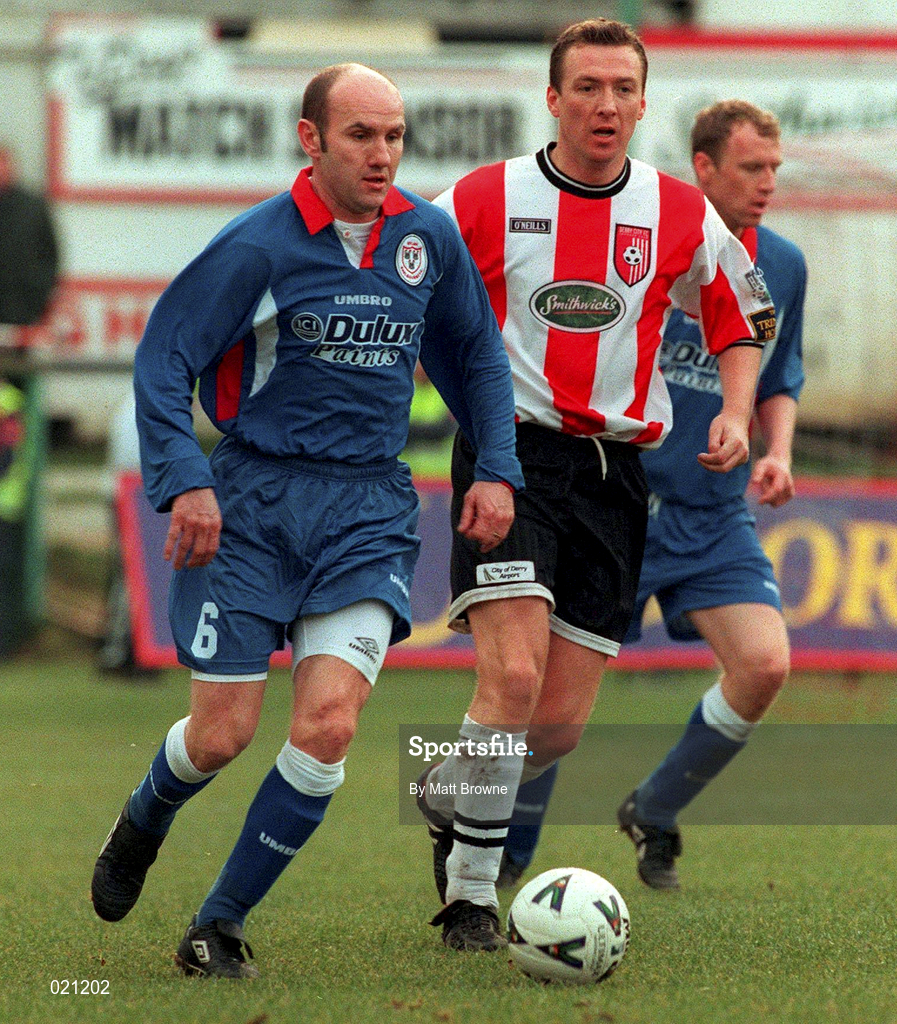 7 March 1999; Paul Doolin of Shelbourne in action against Liam Coyle of Derry City during the FAI Cup quarter-final match between Derry City and Shelbourne at The Brandywell Stadium in Derry. Photo by Matt Browne/Sportsfile