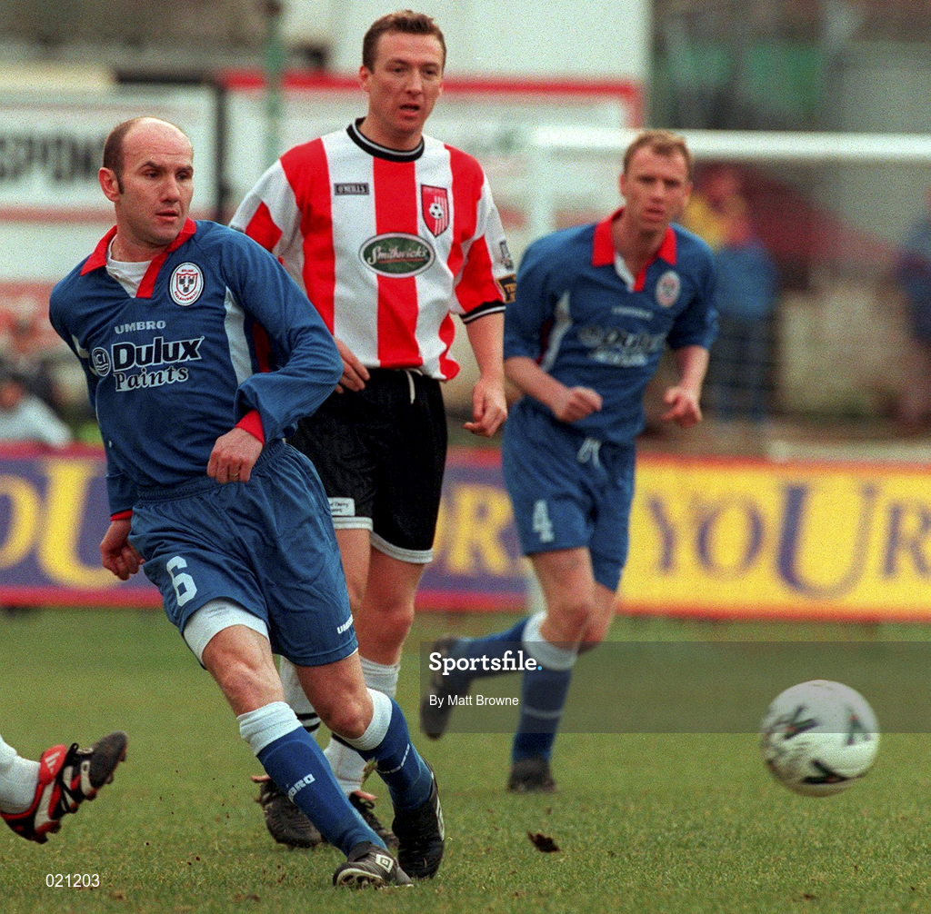 7 March 1999; Paul Doolin of Shelbourne in action against Liam Coyle of Derry City during the FAI Cup quarter-final match between Derry City and Shelbourne at The Brandywell Stadium in Derry. Photo by Matt Browne/Sportsfile