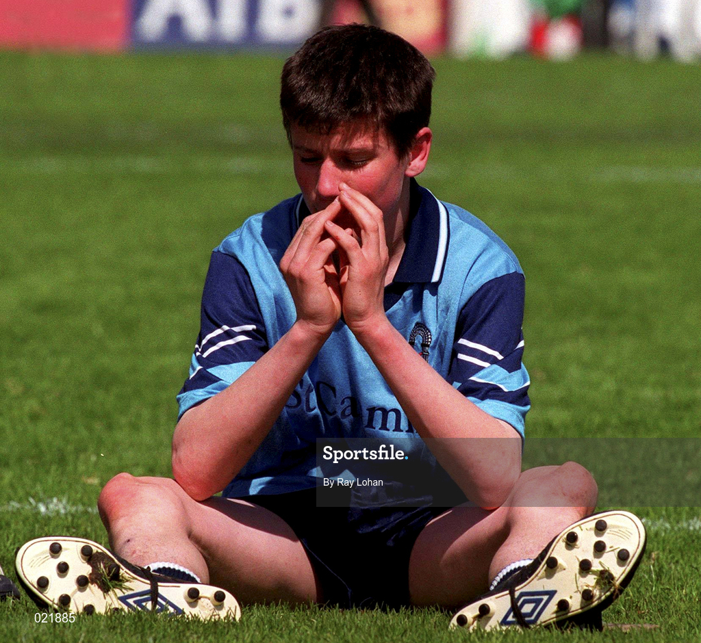 18 April 1999; A dejected John Chaplin of St Caimin's after the GAA All-Ireland Post Primary Senior B Schools Hurling Paddy Drummond Cup Final match between St Caimin's, Clare and Enniscorthy CBS, Wexford at Croke Park in Dublin. Photo by Ray Lohan/Sportsfile