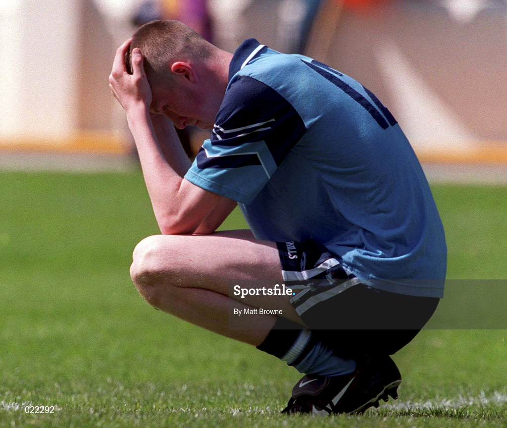 18 April 1999; A dejected Stuart Orpen of St Caimin's after GAA All-Ireland Post Primary Senior B Schools Hurling Paddy Drummond Cup Final match between St Caimin's, Clare and Enniscorthy CBS, Wexford at Croke Park in Dublin. Photo by Matt Browne/Sportsfile