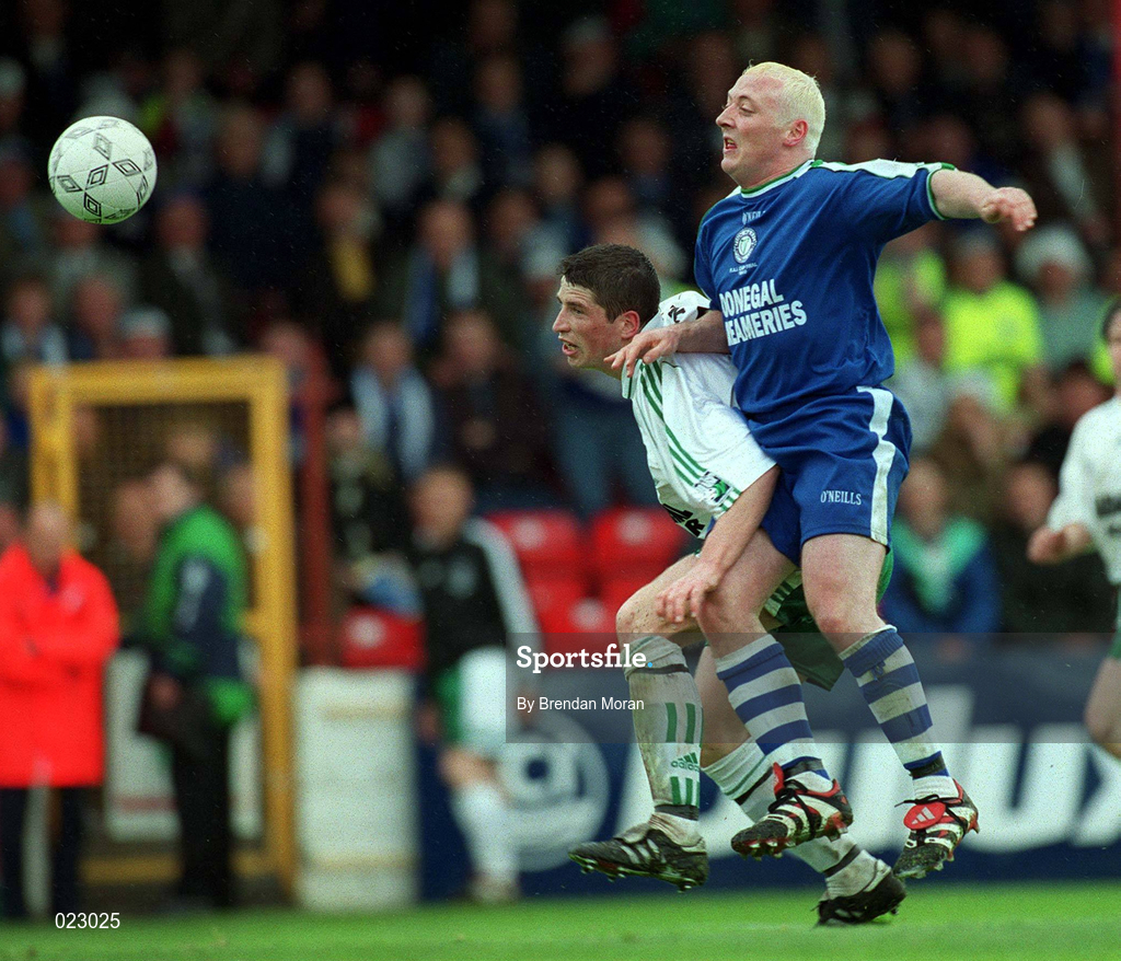 9 May 1999; James Mulligan of Finn Harps in action against Philip Lynch of Bray Wanderers during the Harp Lager FAI Cup final match between Bray Wanderers and Finn Harps at Tolka Park in Dublin. Photo By Brendan Moran/Sportsfile