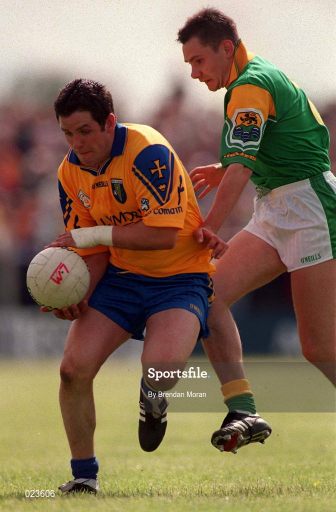 30 May 1999; Francie Grehan of Roscommon in action against James Phelan of Leitrim during the Bank of Ireland Connacht Senior Football Championship at Páirc Sheáin Mhic Dhiarmada in Carrick on Shannon, Leitrim. Photo by Brendan Moran/Sportsfile