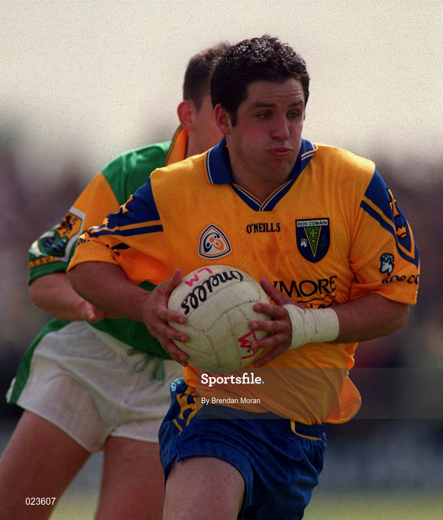 30 May 1999; Francie Grehan of Roscommon gets past James Phelan of Leitrim during the Bank of Ireland Connacht Senior Football Championship at Páirc Sheáin Mhic Dhiarmada in Carrick on Shannon, Leitrim. Photo by Brendan Moran/Sportsfile