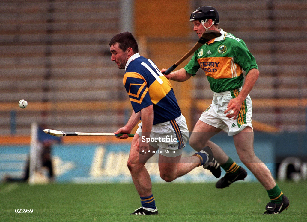 22 May 1999; Paul Shelley of Tipperary in action against Maurice McCarthy of Kerry during the Guinness Munster Senior Hurling Championship Quarter-Final match between Tipperary and Kerry at Semple Stadium in Thurles, Tipperary. Photo by Brendan Moran/Sportsfile