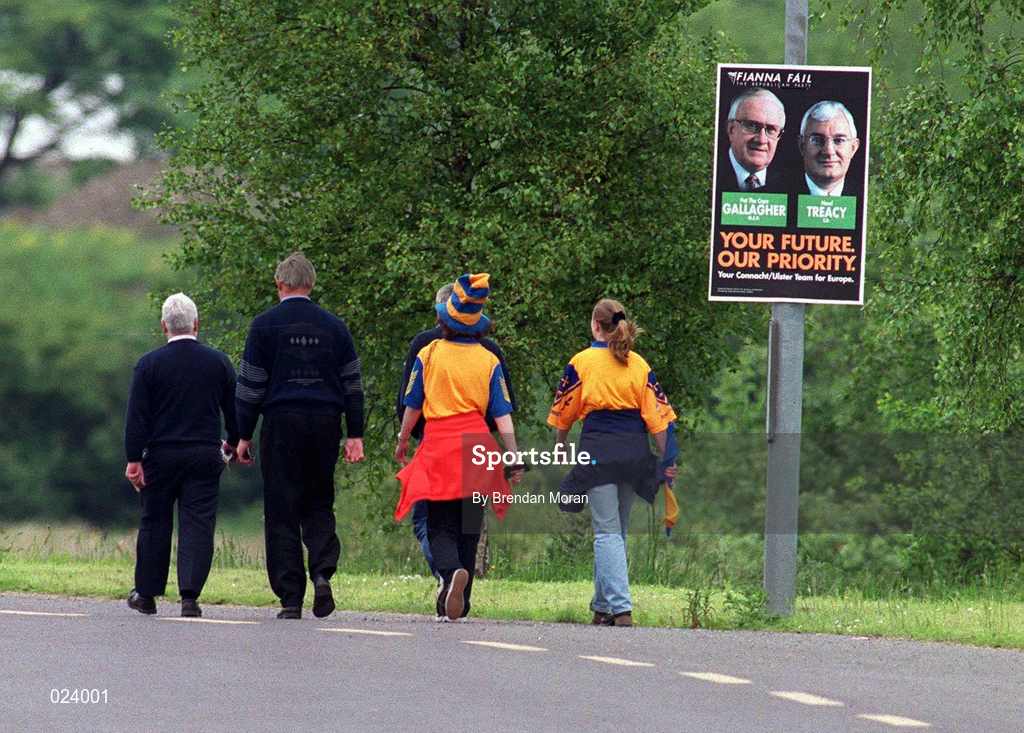 30 May 1999; Roscommon supporters make their way to the stadium before the Bank of Ireland Connacht Senior Football Championship at Páirc Sheáin Mhic Dhiarmada in Carrick on Shannon, Leitrim. Photo by Brendan Moran/Sportsfile