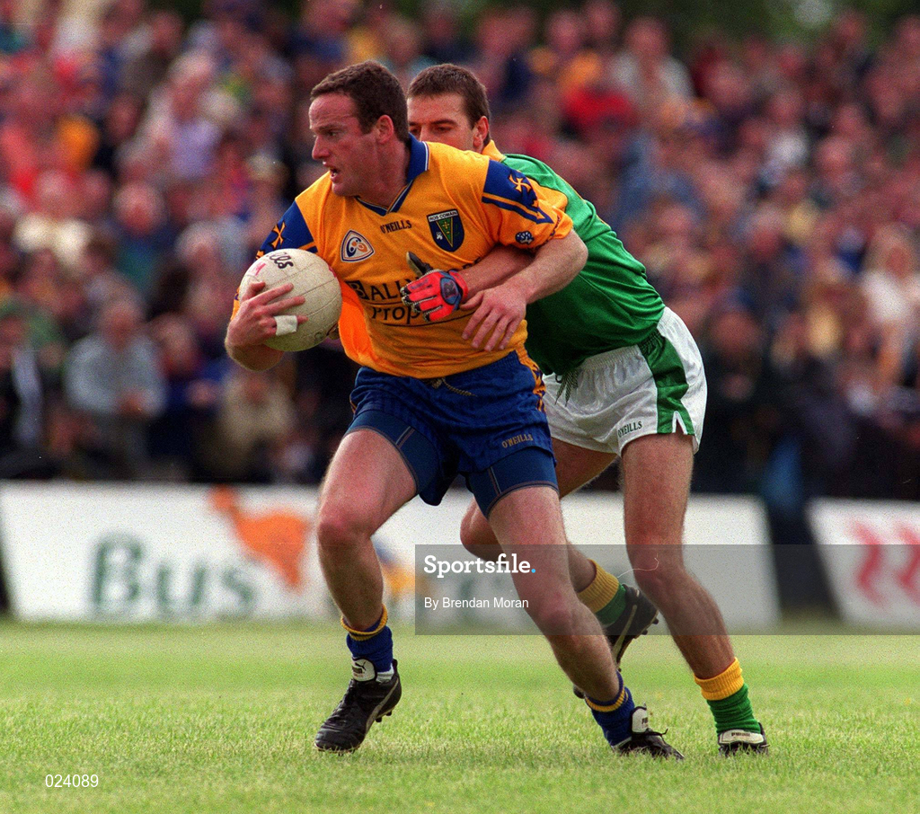 30 May 1999; Tom Ryan of Roscommon in action against Colin Regan of Leitrim during the Bank of Ireland Connacht Senior Football Championship at Páirc Sheáin Mhic Dhiarmada in Carrick on Shannon, Leitrim. Photo by Brendan Moran/Sportsfile