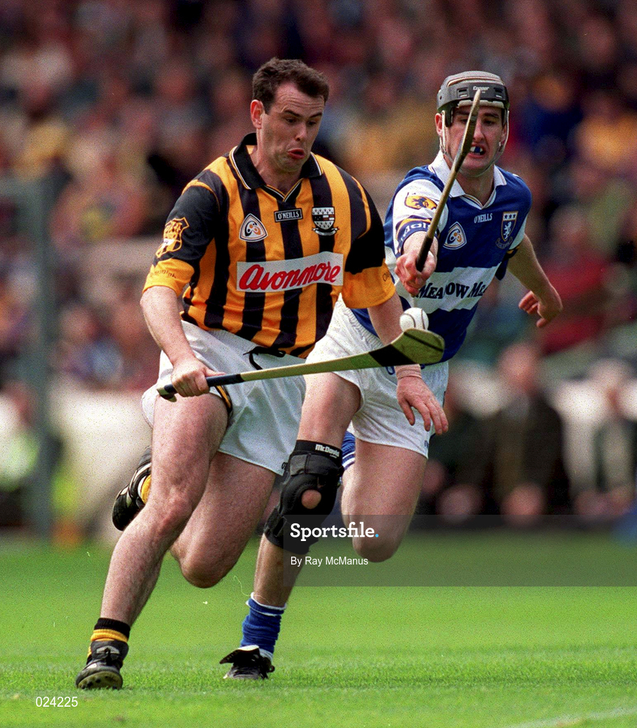 20 June 1999; Brian McEvoy of Kilkenny is tackled by Paul Cuddy of Laois during the Guinness Leinster Senior Hurling Championship semi-final match between Kilkenny and Laois at Croke Park in Dublin. Photo by Ray McManus/Sportsfile