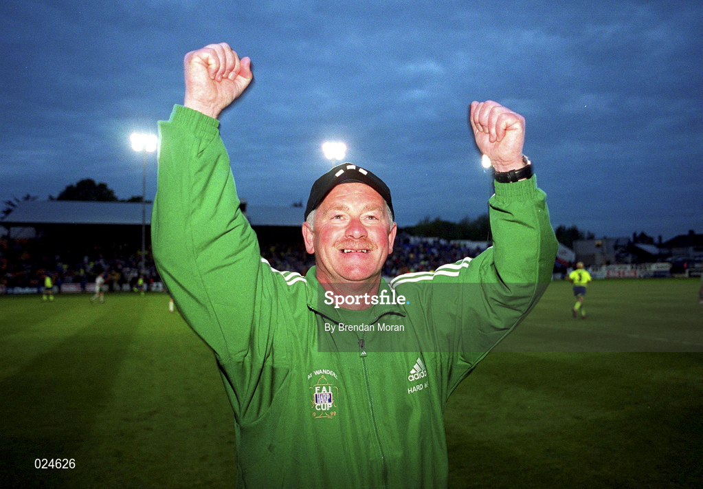 20 May 1999; Bray Wanderers manager Pat Devlin celebrates following the FAI Cup Final Second Replay match between Finn Harps and Bray Wanderers at Tolka Park in Dublin. Photo by Brendan Moran/Sportsfile