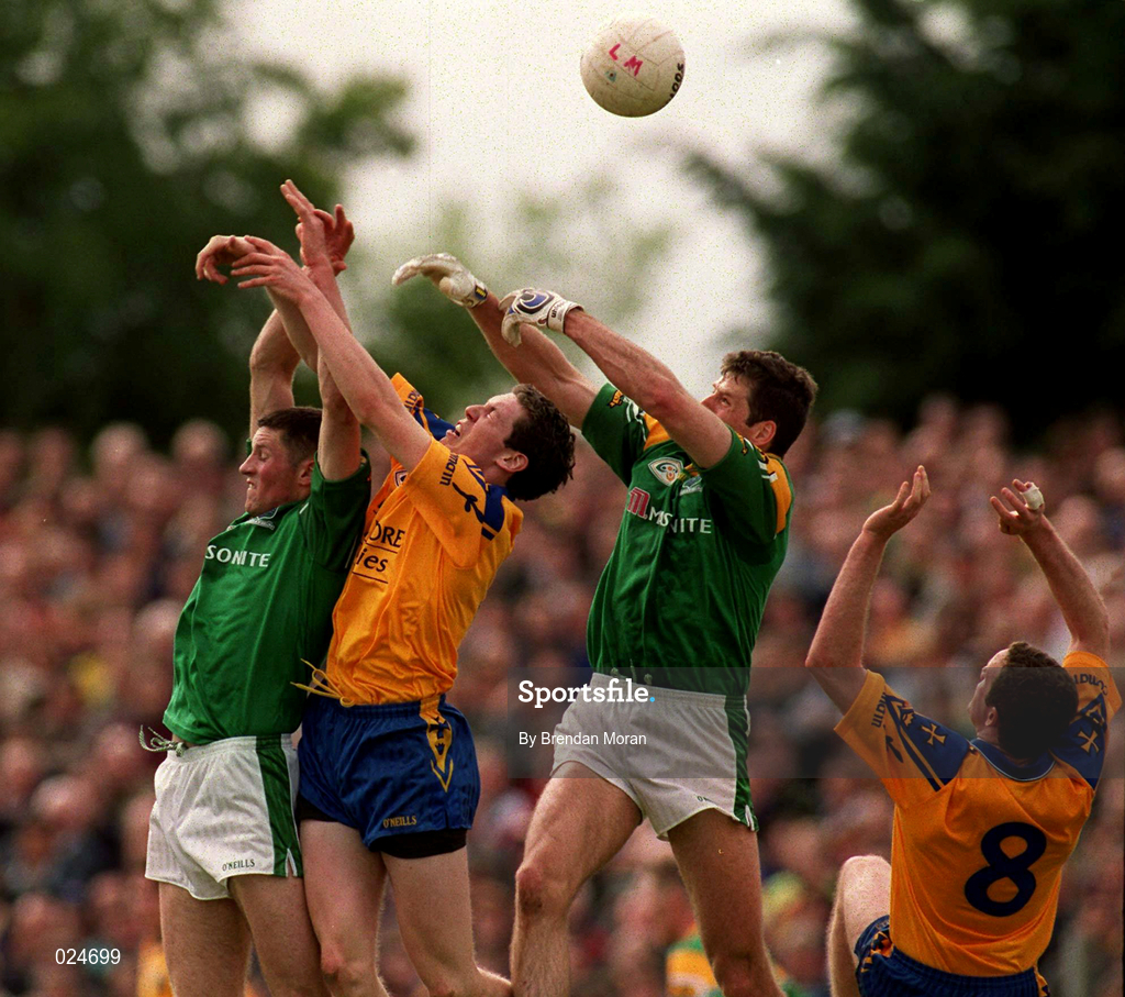 30 May 1999; Paul McDermott, left, and Jason Ward of Leitrim in action against Stephen Lohan, left, and Tom Ryan of Roscommon during the Bank of Ireland Connacht Senior Football Championship quarter-final match between Leitrim and Roscommon at Páirc Seán Mac Diarmada in Carrick-on-Shannon, Leitrim. Photo by Brendan Moran/Sportsfile