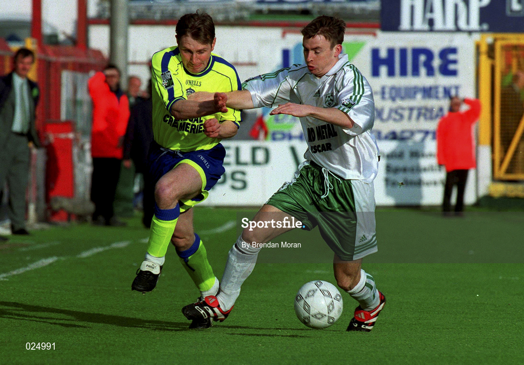 20 May 1999; Tom Mohan of Finn Harps in action against Philip Keogh of Bray Wanderers during the FAI Cup Final Second Replay match between Finn Harps and Bray Wanderers at Tolka Park in Dublin. Photo by Brendan Moran/Sportsfile