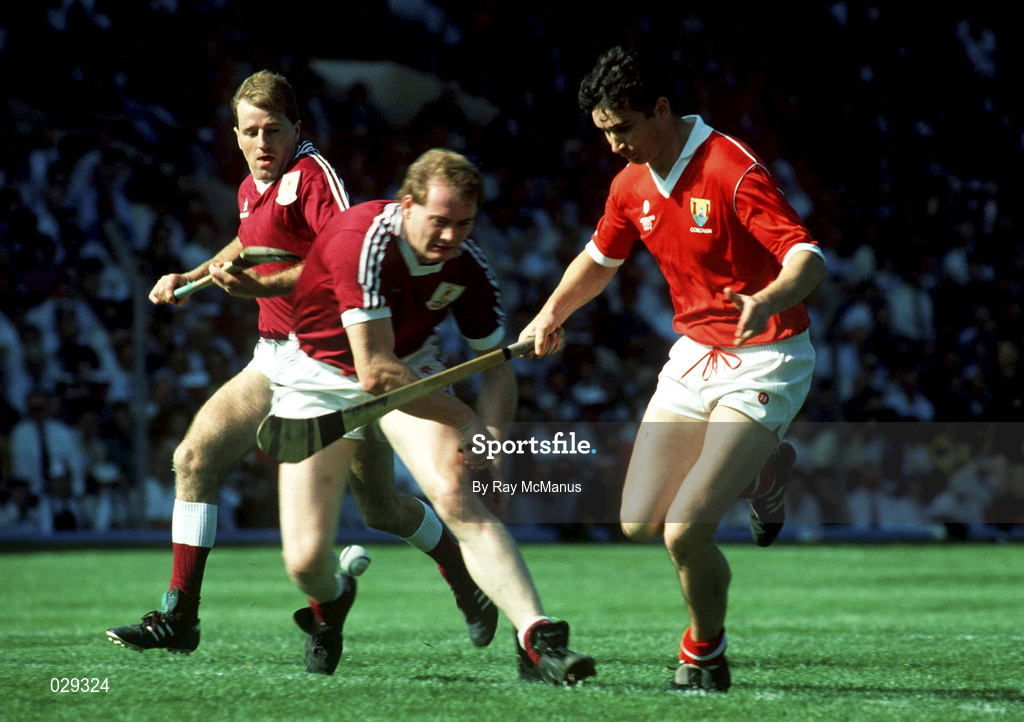 2 September 1990; Tomás Mulcahy of Cork in action against Sean Treacy and Ollie Kilkenny of Galway during the All-Ireland Senior Hurling Championship Final match between Cork and Galway at Croke Park in Dublin. Photo by Ray McManus/Sportsfile