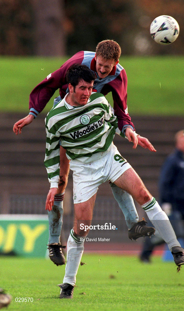 7 November 1999; Graham Lawlor of Shamrock Rovers in action against Damien Maher of Drogheda United during the Eircom League Premier Division match between Shamrock Rovers and Drogheda United at Morton Stadium in Santry, Dublin. Photo by David Maher/Sportsfile