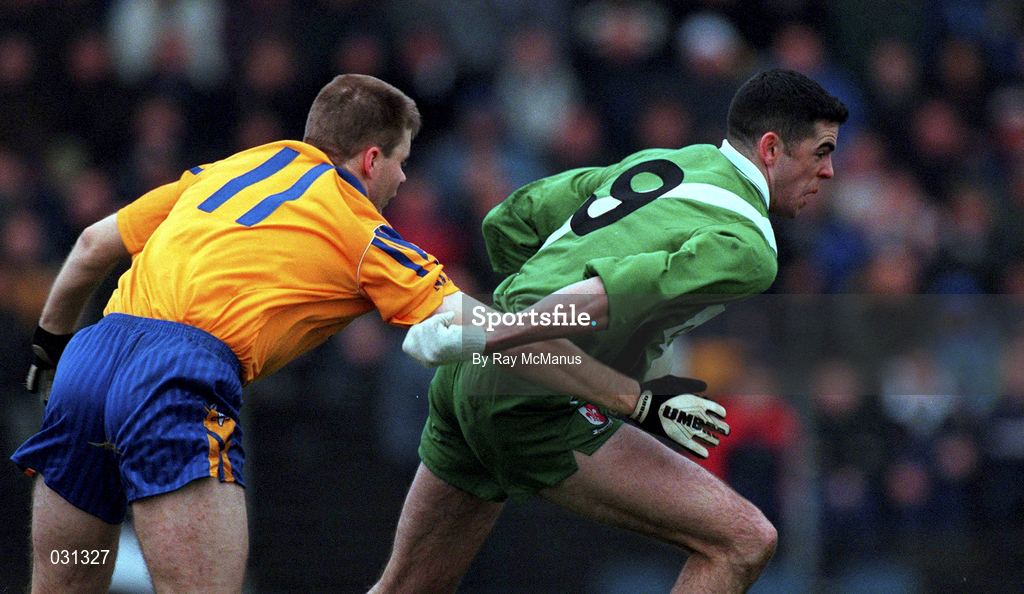 5 December 1999; Dermot Earley of Sarsfields in action against Dessie Farrell of Na Fianna during the AIB Leinster Senior Club Football Championship Final match between Na Fianna and Sarsfields at Páirc Tailteann in Navan, Meath. Photo by Ray McManus/Sportsfile