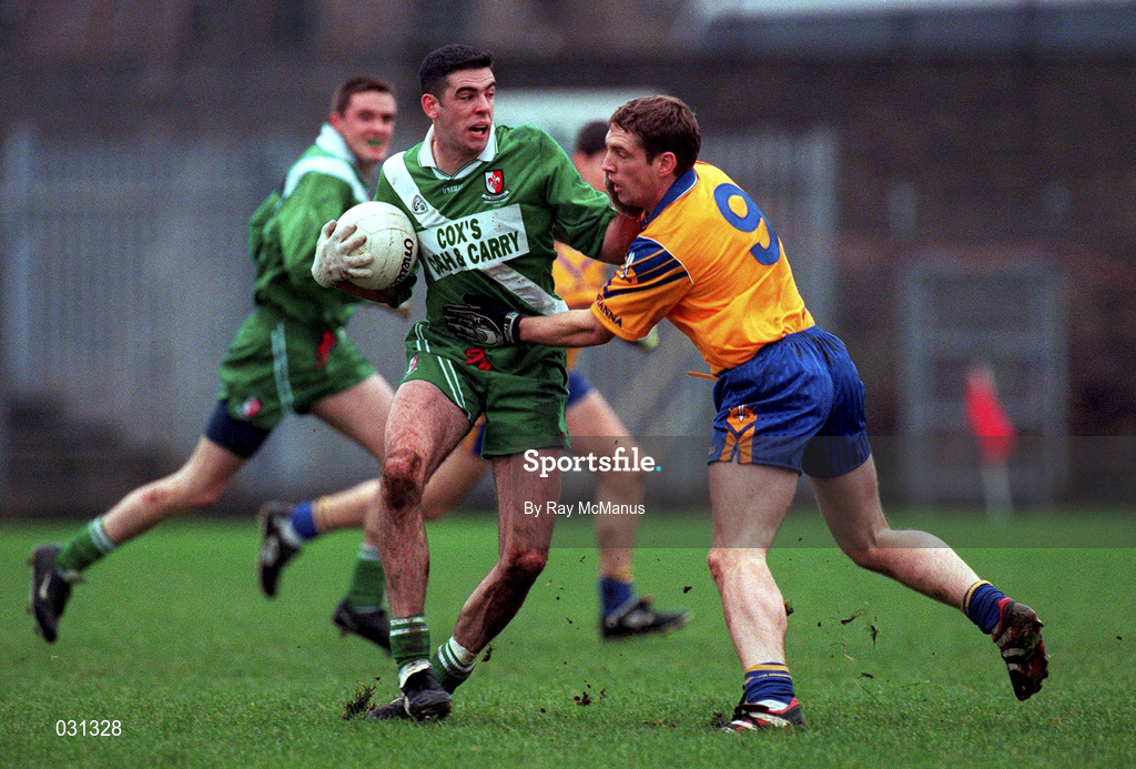 5 December 1999; Dermot Earley of Sarsfields in action against Kieran McGeeney of Na Fianna during the AIB Leinster Senior Club Football Championship Final match between Na Fianna and Sarsfields at Páirc Tailteann in Navan, Meath. Photo by Ray McManus/Sportsfile