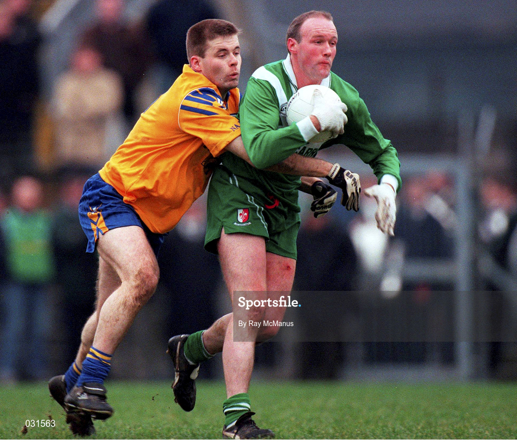 5 December 1999; Kevin Horgan of Sarsfields in action against Dessie Farrell of Na Fianna during the AIB Leinster Senior Club Football Championship Final match between Na Fianna and Sarsfields at Páirc Tailteann in Navan, Meath. Photo by Ray McManus/Sportsfile