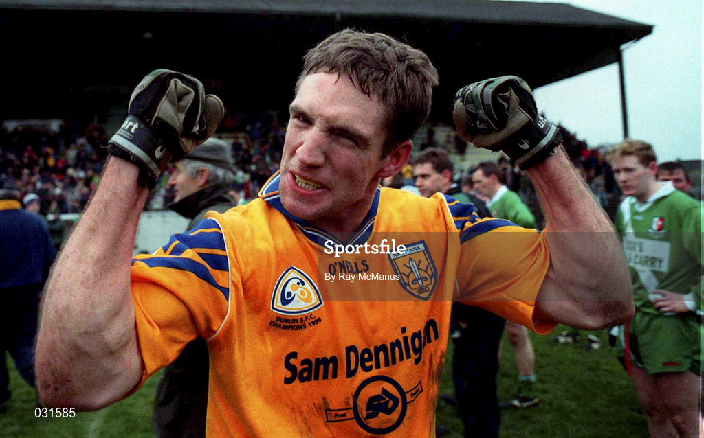 5 December 1999; Na Fianna centre-back Kieran McGeeney celebrates his side's victory in the AIB Leinster Senior Club Football Championship Final match between Na Fianna and Sarsfields at Páirc Tailteann in Navan, Meath. Photo by Ray McManus/Sportsfile