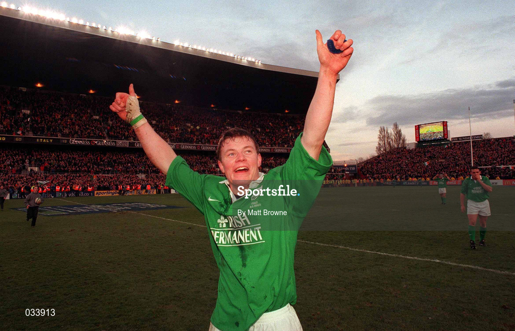 4 March 2000; Brian O'Driscoll of Ireland celebrates after the Lloyds TSB 6 Nations match between Ireland and Italy at Lansdowne Road in Dublin. Photo by Matt Browne/Sportsfile