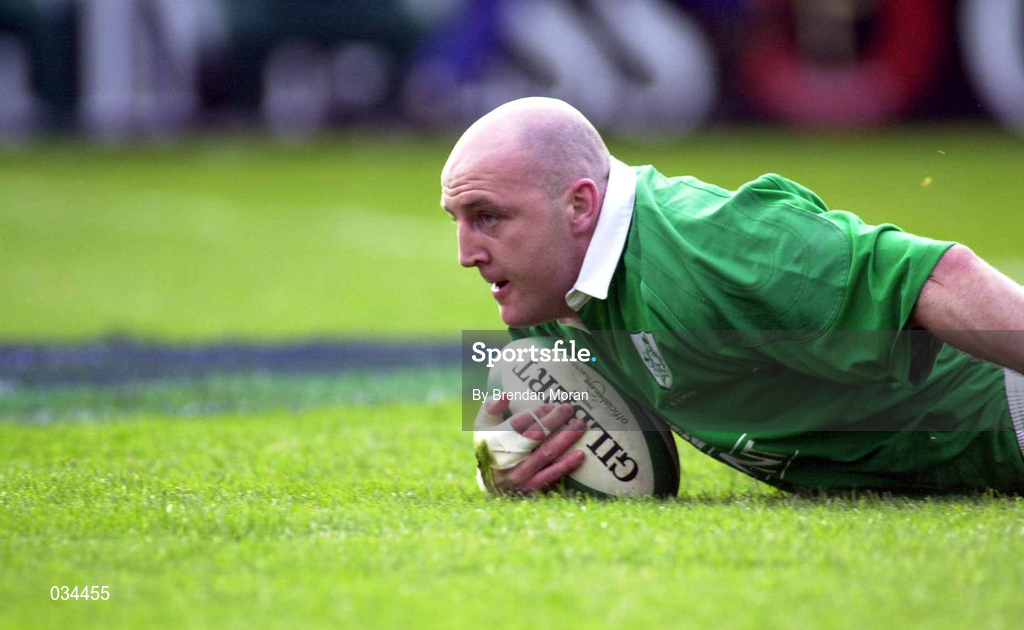 4 March 2000; Keith Wood of Ireland scores his side's first try during the Lloyds TSB 6 Nations match between Ireland and Italy at Lansdowne Road in Dublin. Photo by Brendan Moran/Sportsfile