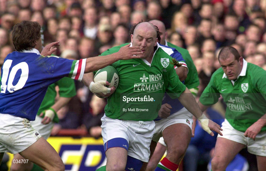 4 March 2000; Keith Wood of Ireland in action against Diego Dominguez of Italy during the Lloyds TSB 6 Nations match between Ireland and Italy at Lansdowne Road in Dublin. Photo by Matt Browne/Sportsfile