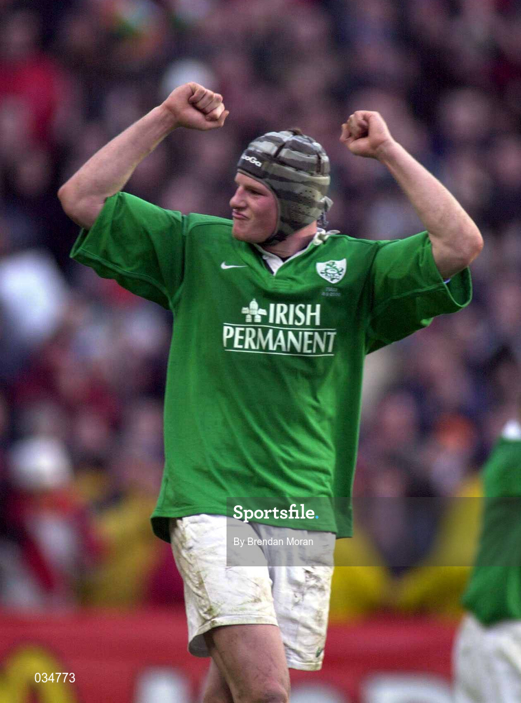 4 March 2000; Malcolm O'Kelly of Ireland celebrates after the Lloyds TSB 6 Nations match between Ireland and Italy at Lansdowne Road in Dublin. Photo by Brendan Moran/Sportsfile
