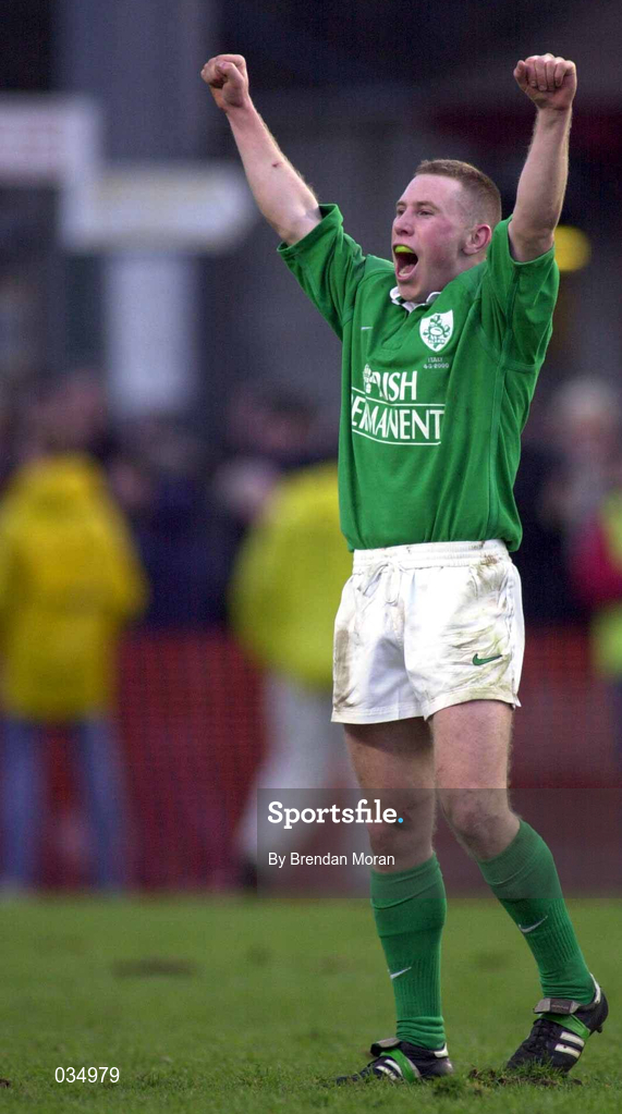 4 March 2000; Peter Stringer of Ireland celebrates after the Lloyds TSB 6 Nations match between Ireland and Italy at Lansdowne Road in Dublin. Photo by Brendan Moran/Sportsfile