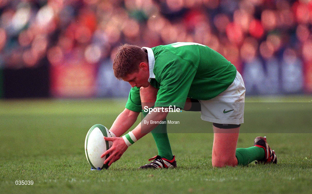 4 March 2000; Ronan O'Gara of Ireland lines up a kick during the Lloyds TSB 6 Nations match between Ireland and Italy at Lansdowne Road in Dublin. Photo by Brendan Moran/Sportsfile