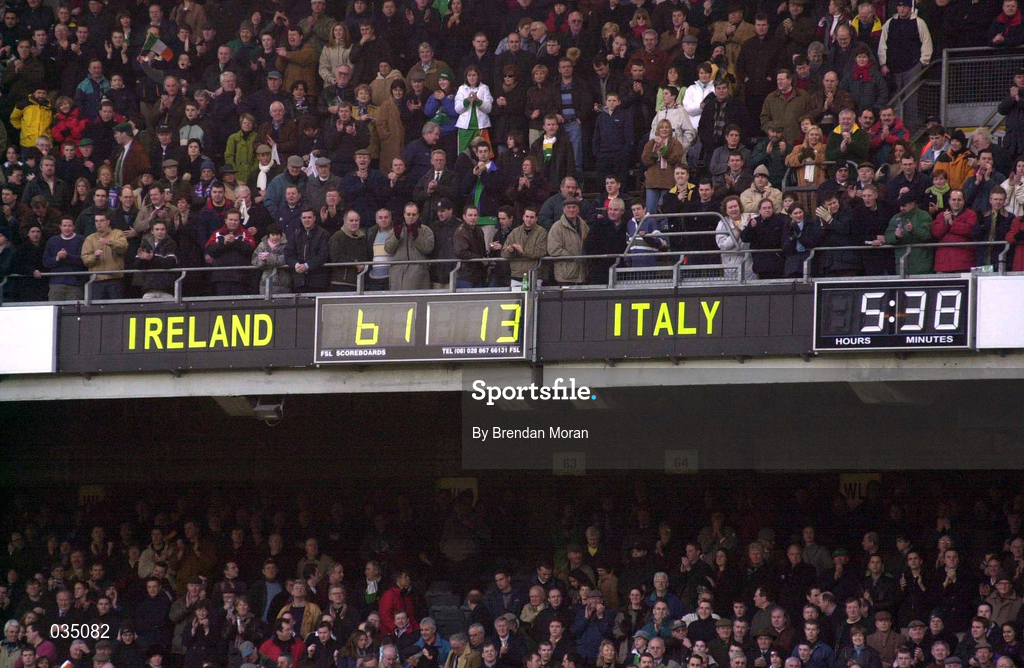 4 March 2000; A general view of the scoreboard after the Lloyds TSB 6 Nations match between Ireland and Italy at Lansdowne Road in Dublin. Photo by Brendan Moran/Sportsfile