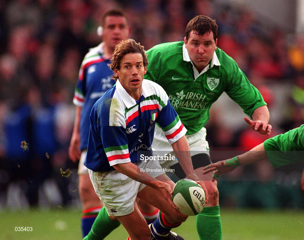 4 March 2000; Diego Dominguez of Italy in action against Anthony Foley of Ireland during the Lloyds TSB 6 Nations match between Ireland and Italy at Lansdowne Road in Dublin. Photo by Brendan Moran/Sportsfile