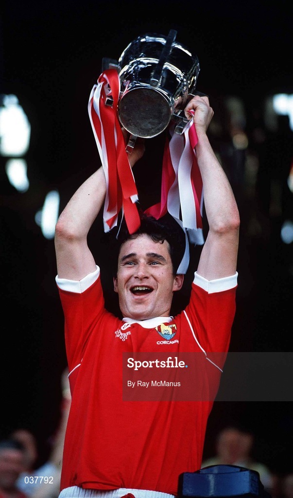 2 September 1990; Cork captain Tomas Mulcahy lifts the Liam MacCarthy cup following the All-Ireland Senior Hurling Championship Final match between Cork and Galway at Croke Park in Dublin. Photo by Ray McManus/Sportsfile