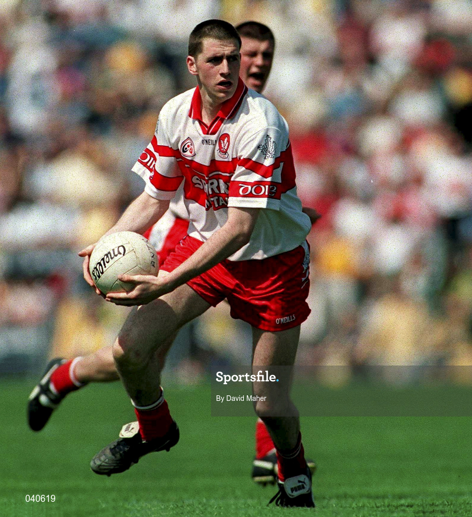 25 June 2000; Enda Muldoon of Derry during the Bank of Ireland Ulster Senior Football Championship Semi-Final match between Antrim and Derry at Casement Park in Belfast, Antrim. Photo by David Maher/Sportsfile