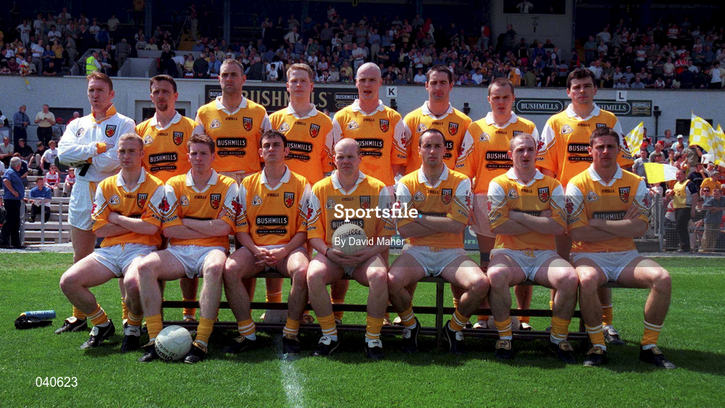 25 June 2000; The Antrim team prior to the Bank of Ireland Ulster Senior Football Championship Semi-Final match between Antrim and Derry at Casement Park in Belfast, Antrim. Photo by David Maher/Sportsfile