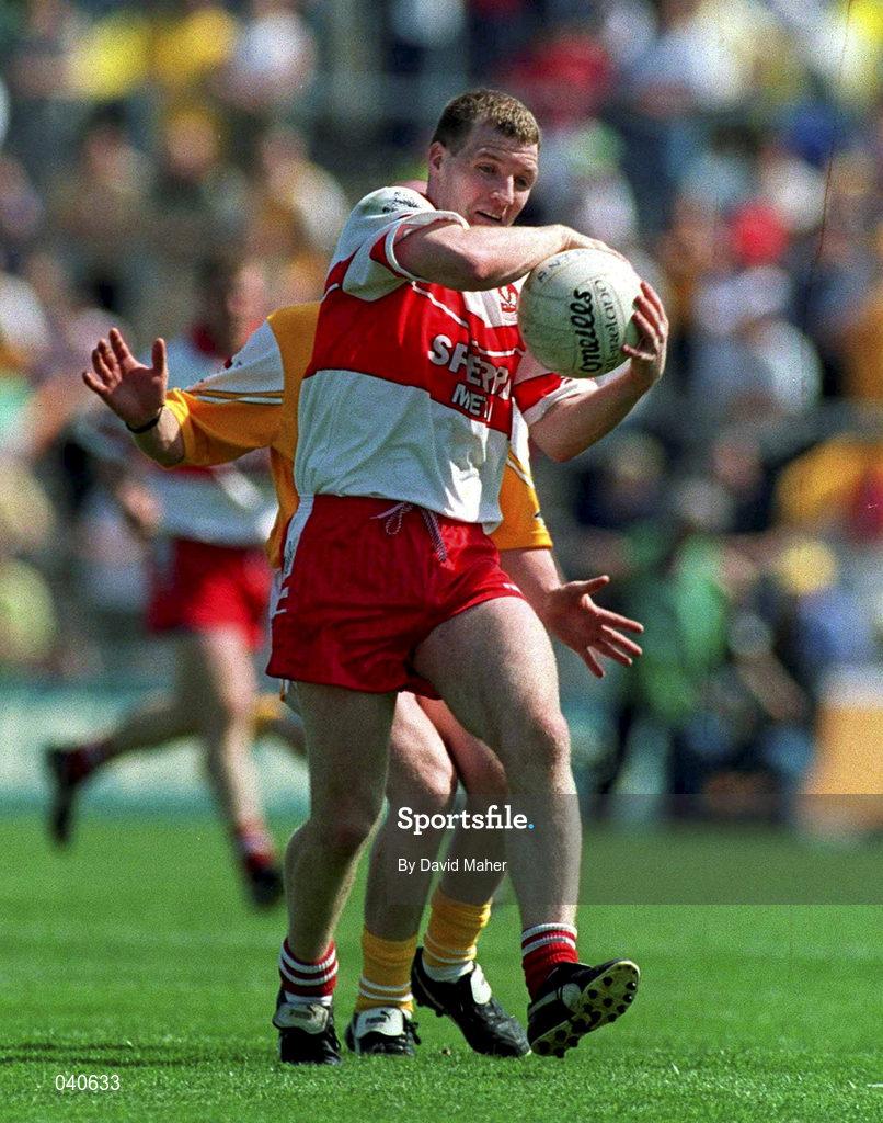25 June 2000; Johnny McBride of Derry during the Bank of Ireland Ulster Senior Football Championship Semi-Final match between Antrim and Derry at Casement Park in Belfast, Antrim. Photo by David Maher/Sportsfile