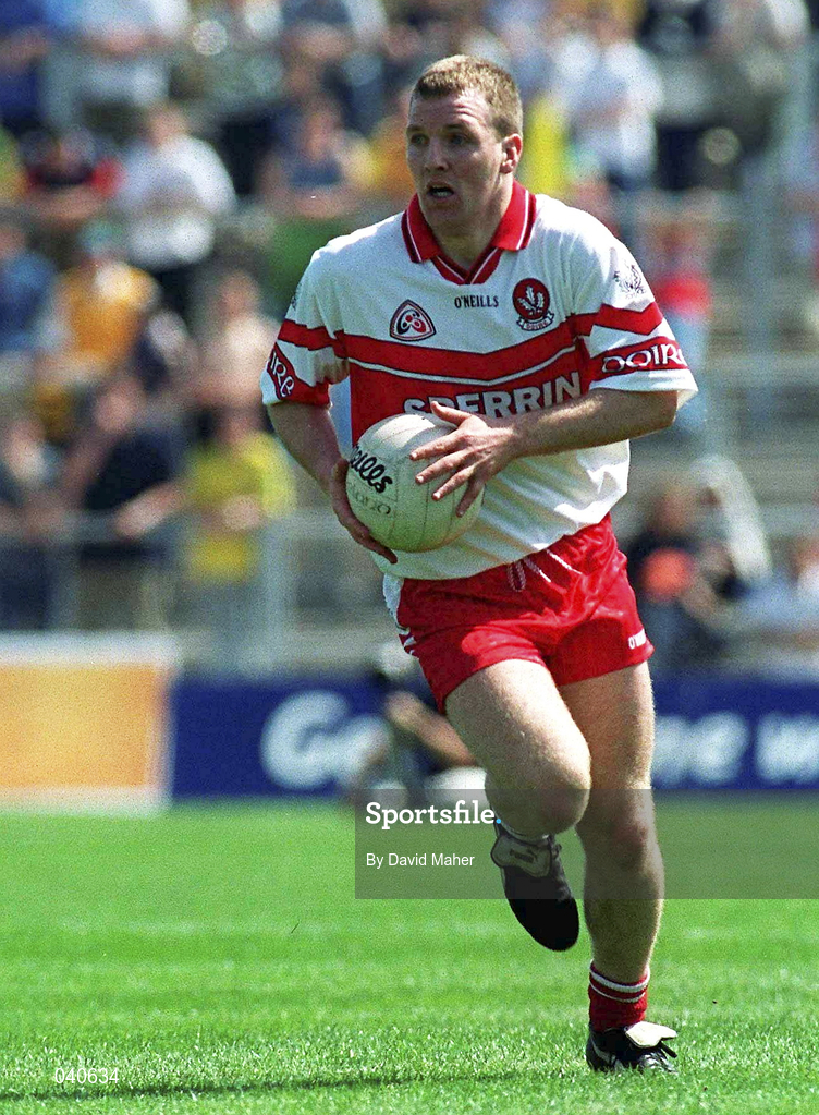25 June 2000; Johnny McBride of Derry during the Bank of Ireland Ulster Senior Football Championship Semi-Final match between Antrim and Derry at Casement Park in Belfast, Antrim. Photo by David Maher/Sportsfile