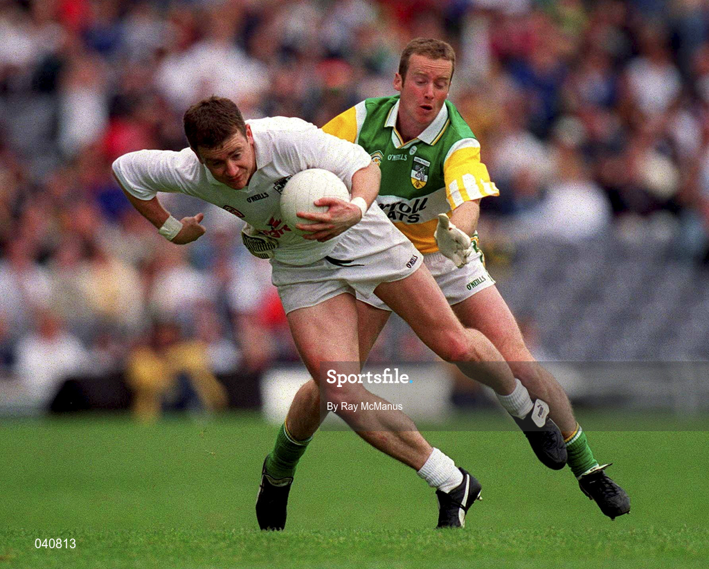 25 June 2000; John Finn of Kildare in action against Ronan Mooney of Offaly during the Bank of Ireland Leinster Senior Football Championship Semi-Final match between Kildare and Offaly at Croke Park in Dublin. Photo by Ray McManus/Sportsfile