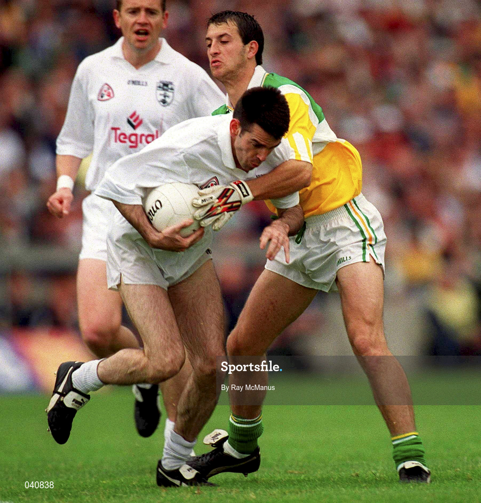 25 June 2000; Ken Doyle of Kildare in action against Roy Malone of Offaly during the Bank of Ireland Leinster Senior Football Championship Semi-Final match between Kildare and Offaly at Croke Park in Dublin. Photo by Ray McManus/Sportsfile