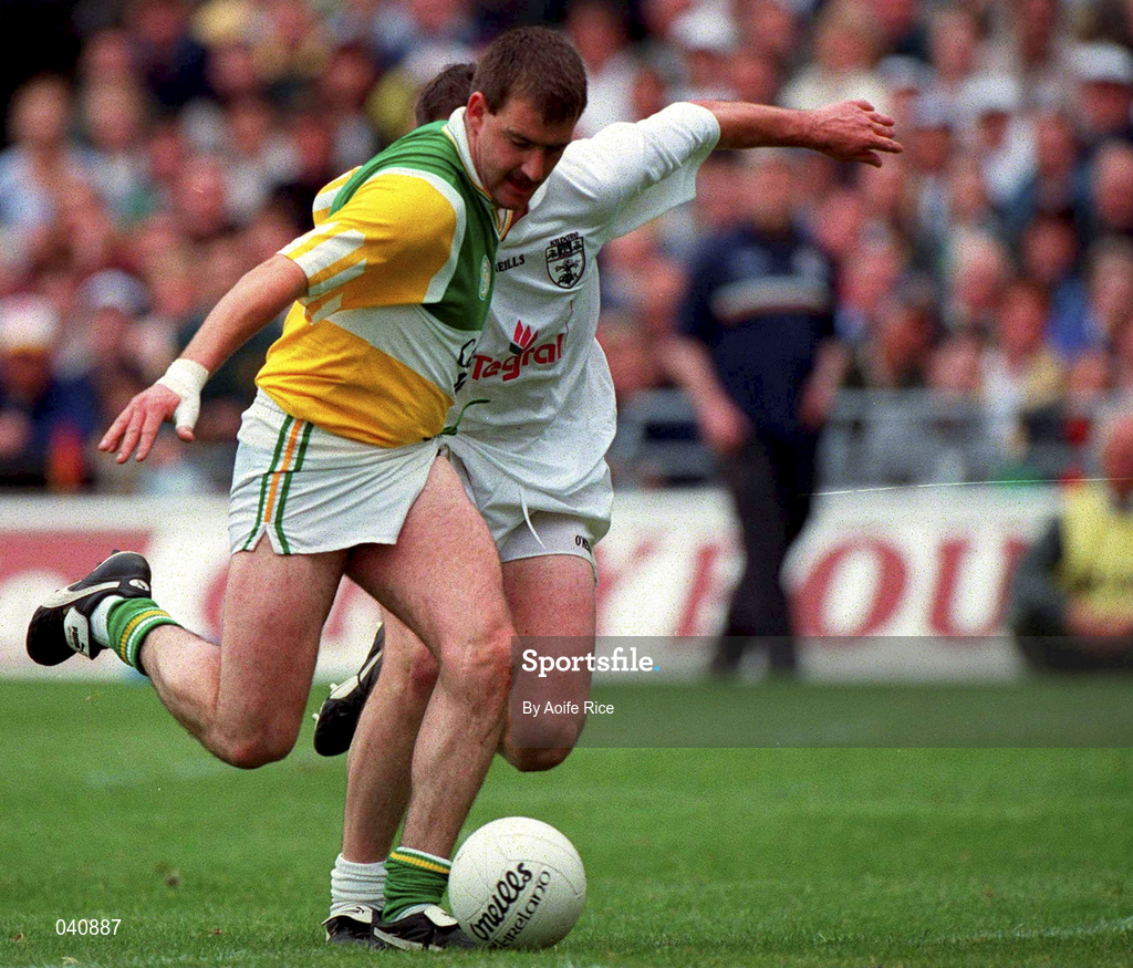 25 June 2000; Mel Keenaghan of Offaly in action against Glenn Ryan of Kildare during the Bank of Ireland Leinster Senior Football Championship Semi-Final match between Kildare and Offaly at Croke Park in Dublin. Photo by Aoife Rice/Sportsfile