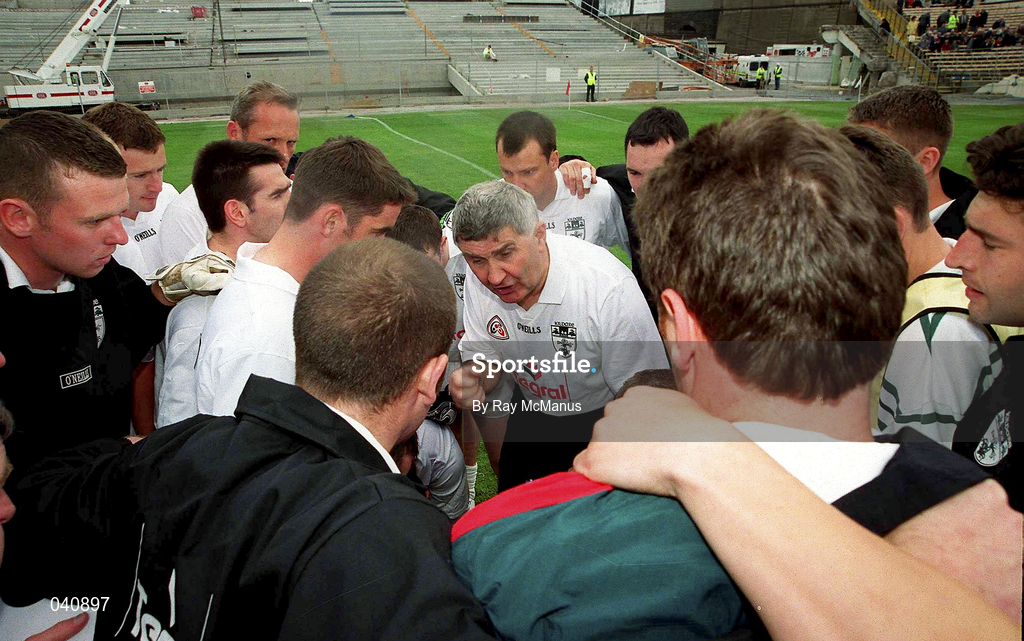 25 June 2000; Kildare manager Mick O'Dwyer speaks to his players prior to the Bank of Ireland Leinster Senior Football Championship Semi-Final match between Kildare and Offaly at Croke Park in Dublin. Photo by Ray McManus/Sportsfile