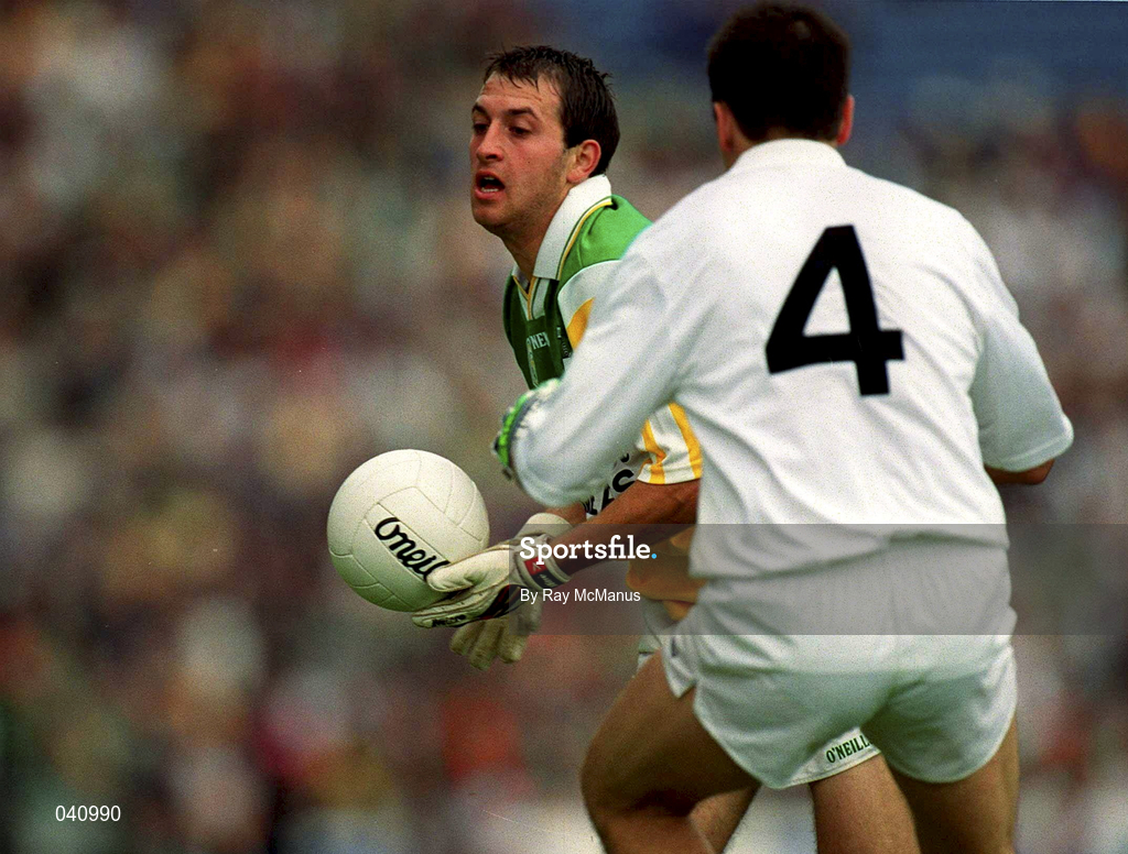 25 June 2000; Roy Malone of Offaly in action against Derek Maher of Kildare during the Bank of Ireland Leinster Senior Football Championship Semi-Final match between Kildare and Offaly at Croke Park in Dublin. Photo by Ray McManus/Sportsfile